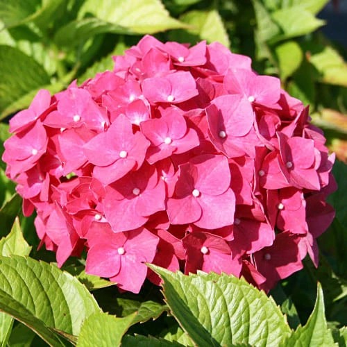 Гортензия крупнолистная Leuchtfeuer (Лойтфоер) - сорт имеет крупные шапки соцветий , насыщенно-розовые с темно-карминовым оттенком, иногда с зеленовато-кремовым. Привлекают внимание садоводов своей необычной яркой палитрой.