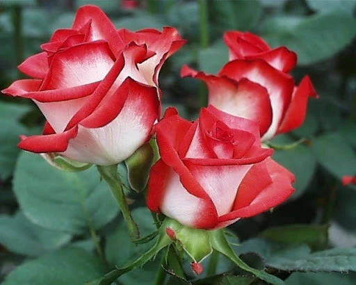 Красива чайно-гібридна троянда кремова з контрастно-червоним краєм пелюсток, високим келихом сильно махрова, не вказує серединки. Дуже добре підходить для зрізання, позбавлена запаху добре цвіте повторно, середньо стійка до захворювань.