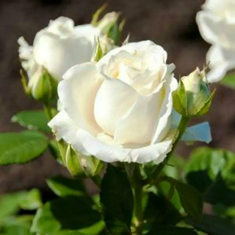 Прекрасный чайно-гибридный сорт, который очаровывает крупными бутонами (7-9 см) белого цвета (символ чистоты и невинности), с легкими изумрудными нотками по краям лепестков. Хорошо переносит жару, продолжая радовать нежным волшебным ароматом. Раскидистые кусты устойчивы к болезням.
