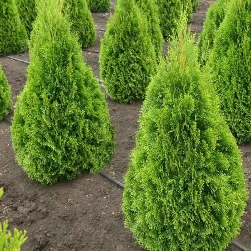 Туя західна (Смарагд) має відносно компактні розміри. У висоту дерево зростає до 3 м (іноді більше – до 4-6 м). Максимальний діаметр крони дорослого дерева становить 100-150 см. Колір хвої коливається від смарагдового до салатного із золотистим відтінком, який видно виключно на сонячному кольорі.